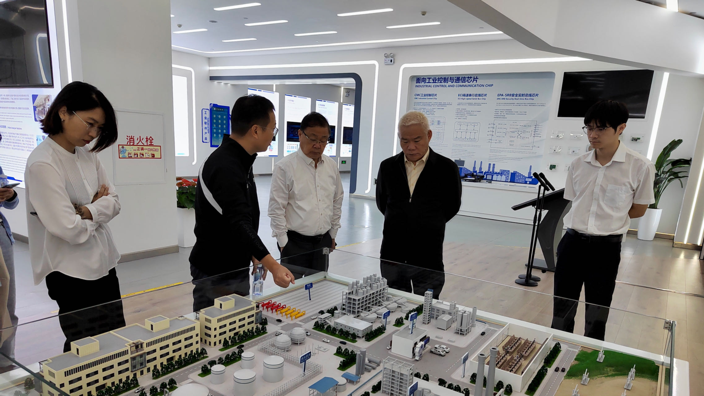 会前,调研组一行首先参观了中控技术公司的企业发展展厅,详细了解了中控技术公司的发展历程及在助力流程工业数字化、智能化建设等领域取得的各项成果。随后,进行座谈。