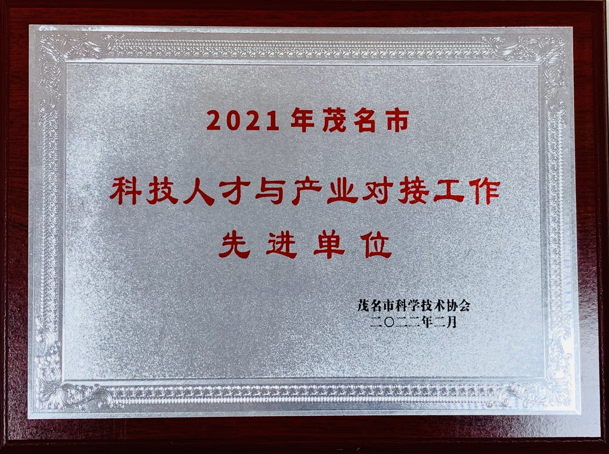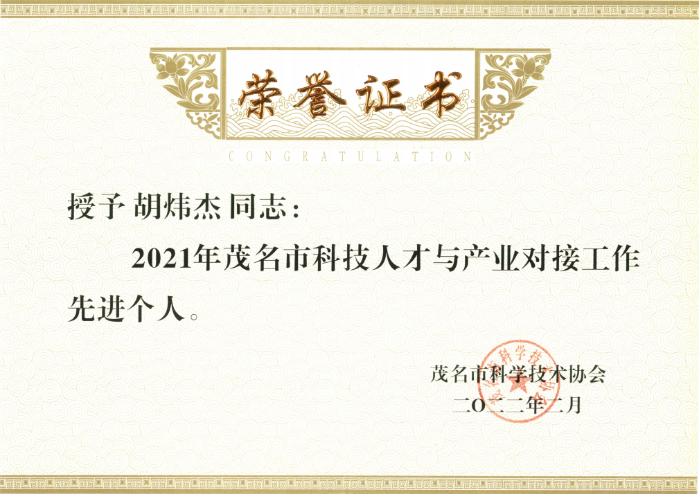 近日,茂名市科学技术协会发布《关于表扬2021年茂名市科技人才与产业对接工作先进单位及个人的通报》,据悉我市共8家单位获评先进单位,7名个人获评先进个人,我院同时荣获科技人才与产业对接先进单位及先进个人表彰。