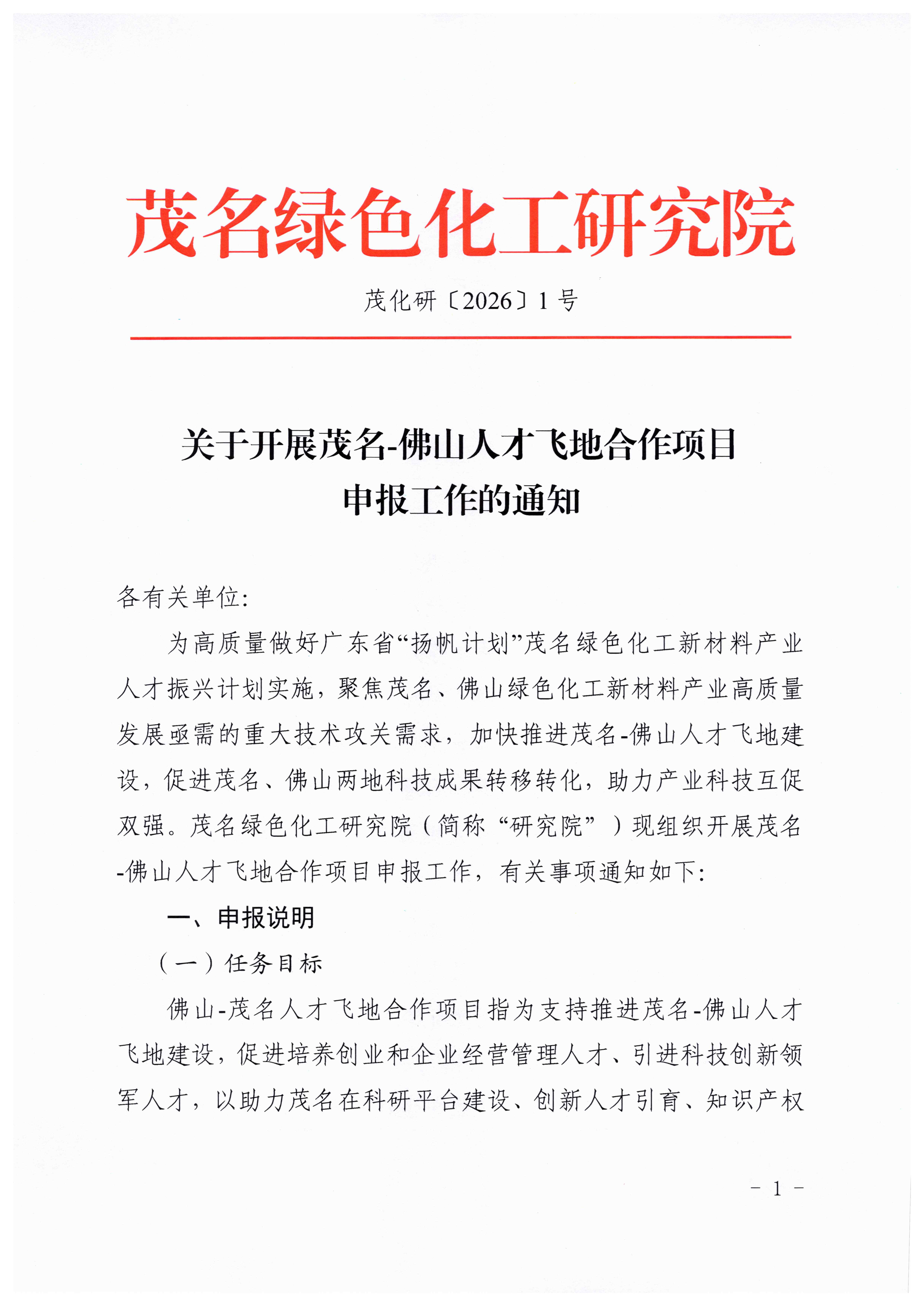 关于开展茂名-佛山人才飞地合作项目申报工作的通知(茂化研〔2026〕1号).pdf